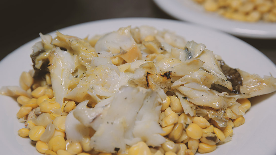 In Santa Catarina da Serra, as well as the entire region located in the limestone massif of Serra de Aire, chickling peas were made with corn bread as the base, drizzled with olive oil, and served with baked cod and raw onion.