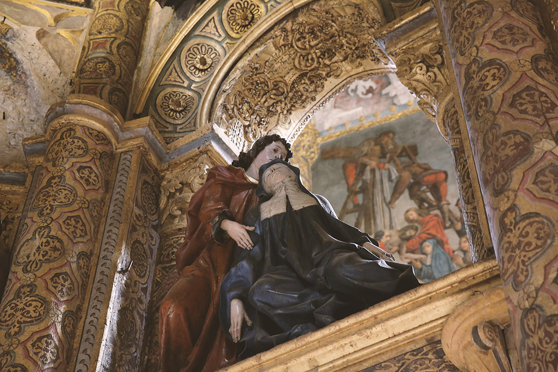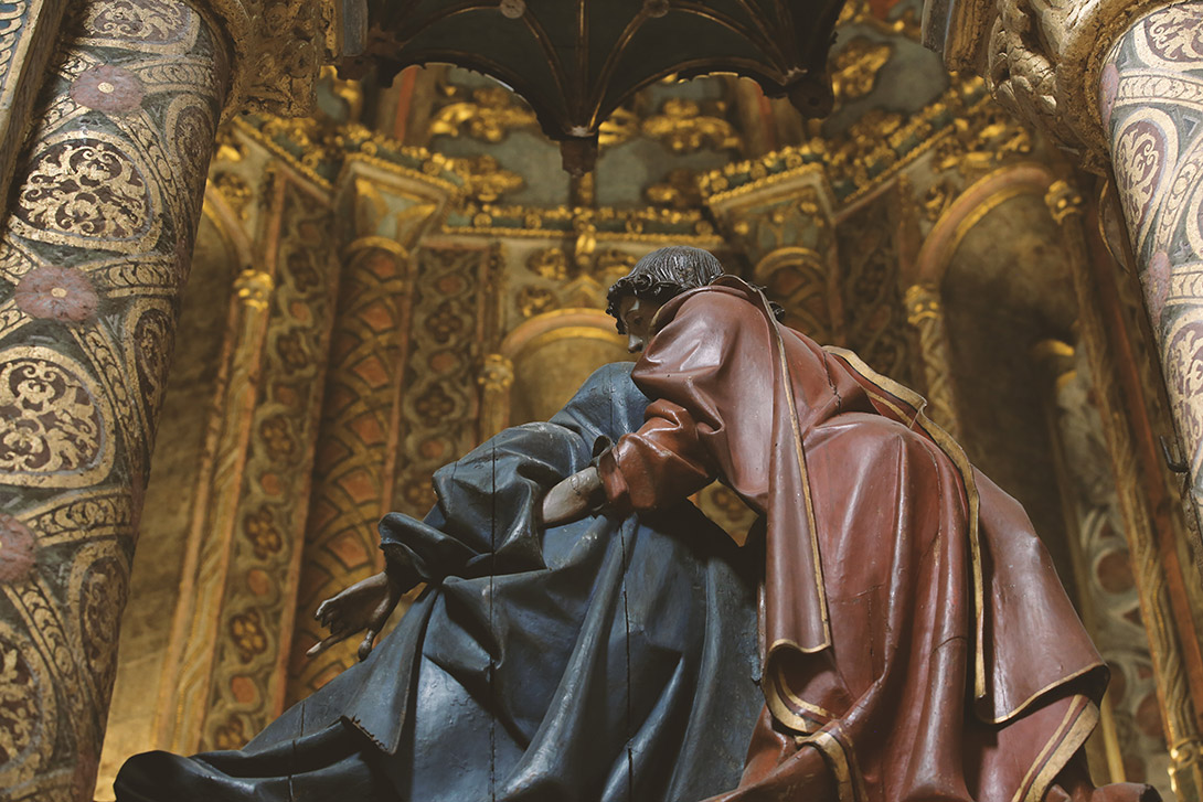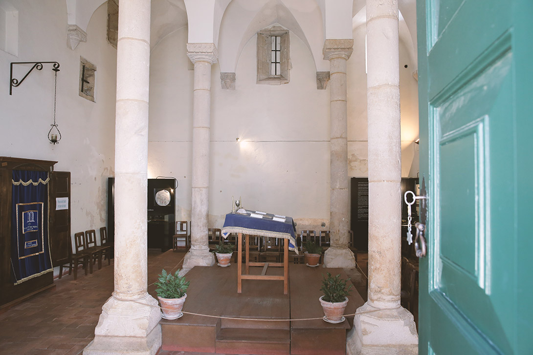 Muito discreta por fora, a Sinagoga de Tomar é surpreendente por dentro. O único templo hebraico proto-renascentista do país, é composto por quatro colunas que representam as mães de Israel: Sara, Raquel, Rebeca e Lea. Entre as colunas estão ligados 12 arcos, que simbolizam as 12 tribos de Israel.