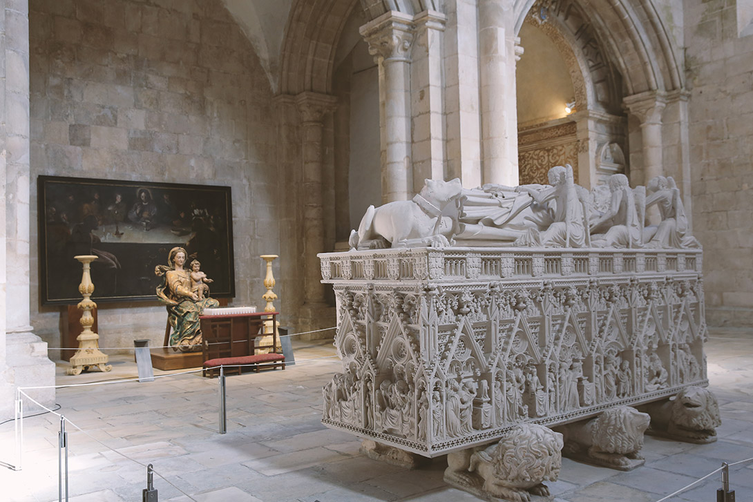 Também conhecido como Real Abadia de Santa Maria de Alcobaça, o Mosteiro guarda preciosidades como a porta da sacristia de tempos manuelinos; a capela-relicário, repleta de talha dourada nos interstícios dos bustos-relicários em terracota policromada; ou os túmulos de D. Pedro e D. Inês de Castro, de estilo gótico, protagonistas daquela que é para muitos a maior história de amor portuguesa. O Mosteiro de Alcobaça é muito procurado por amantes, e diz-se que quem jura fidelidade a esse amor diante daqueles túmulos, é concedido com o amor eterno.